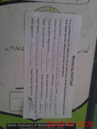 | EMIS Code: 35430276 | Name of School: GES MC MOHALLAH QADIR ABAD SHAH COLONY | |||