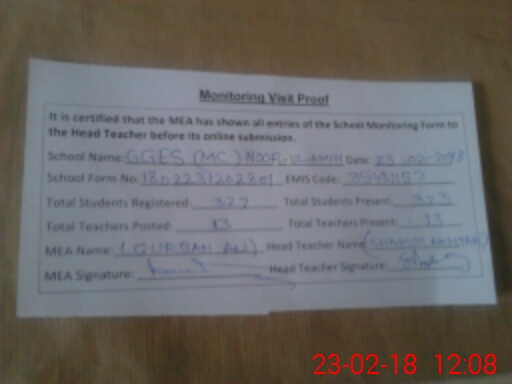 | EMIS Code: 35431157 | Name of School: GGES MC NOOR-UL-AMEEN COLONY | |||