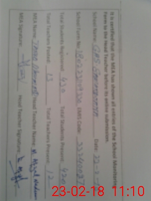 | Certified that this School was Inspected by the Undersigned MEA/DMO Today and the Information Stated Above is as Per Record. | |||||