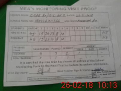 | Attendance Register | Head Teacher | MEA with School | Visit Proof |