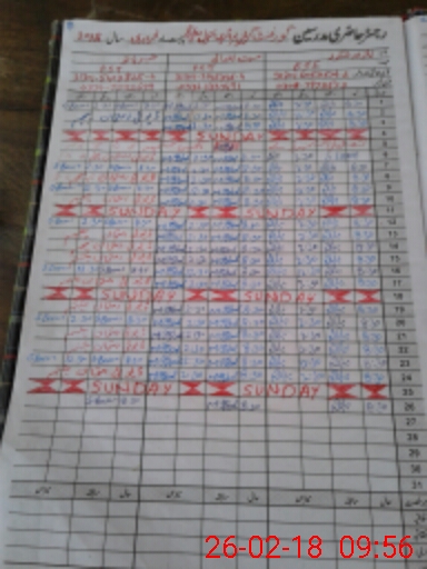 | CNIC | Full Name | Designation | R/C | Absence During Last Calender Month |