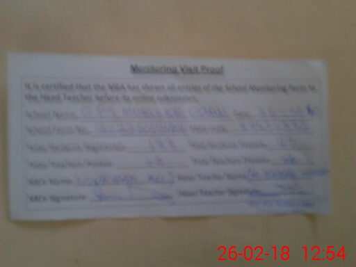 | Attendance Register | Head Teacher | MEA with School | Visit Proof |