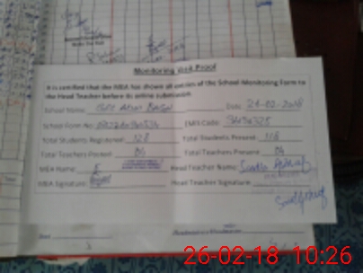| Attendance Register | Head Teacher | MEA with School | Visit Proof |