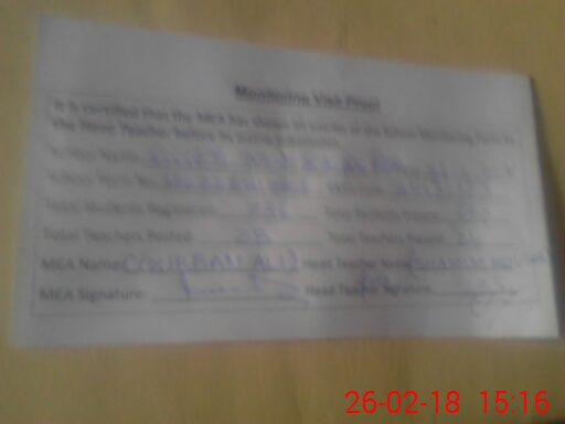 | Attendance Register | Head Teacher | MEA with School | Visit Proof |