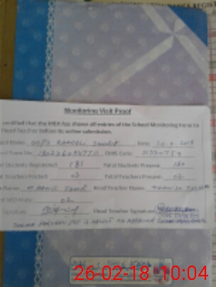 | Attendance Register | Head Teacher | MEA with School | Visit Proof |