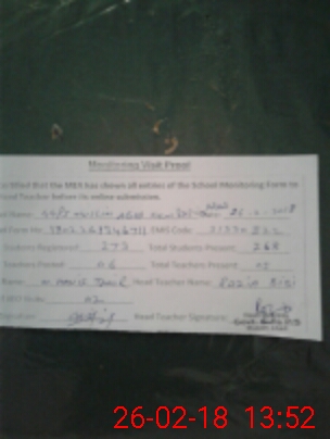 | Certified that this School was Inspected by the Undersigned MEA/DMO Today and the Information Stated Above is as Per Record. | |||||
