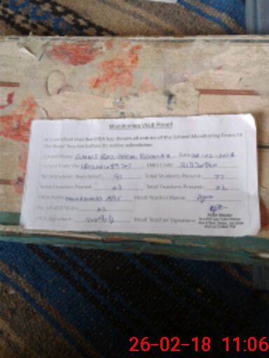 | Attendance Register | Head Teacher | MEA with School | Visit Proof |
