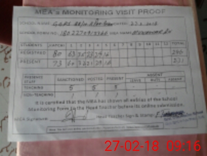 | Attendance Register | Head Teacher | MEA with School | Visit Proof |