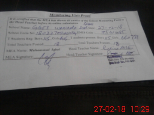 | EMIS Code: 35410085 | Name of School: GGHS WANDALA DIAL SHAH | |||