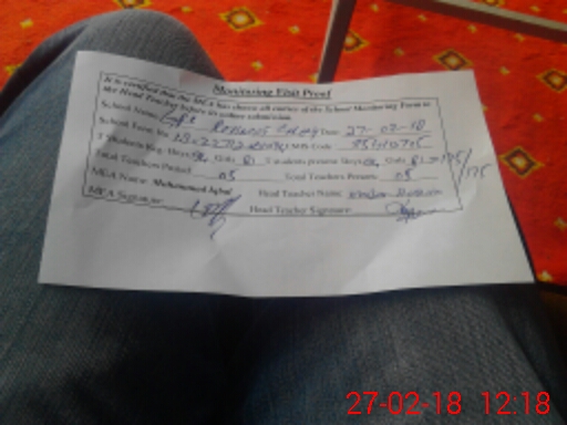 | Attendance Register | Head Teacher | MEA with School | Visit Proof |