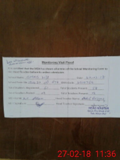 | EMIS Code: 31310764 | Name of School: GPS CHAK NO 21 P | |||