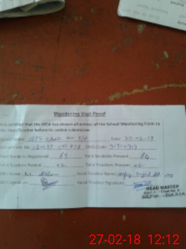 | EMIS Code: 31310313 | Name of School: GPS CHAK NO. 9/P | |||
