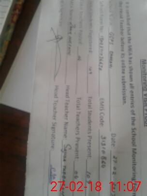 | Monitoring Date: 27-02-2018 | Start Time: 27-02-2018 10:36 AM | End Time: 27-02-2018 11:09 AM | Name of MEA: Za**** Hu**** | |