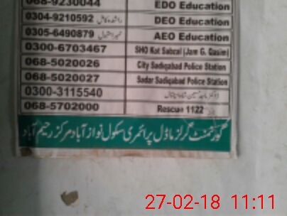 | District: RAHIMYAR KHAN | Tehsil: SADIQABAD | Markaz: NAWAZ ABAD - FEMALE | Level: Primary | |