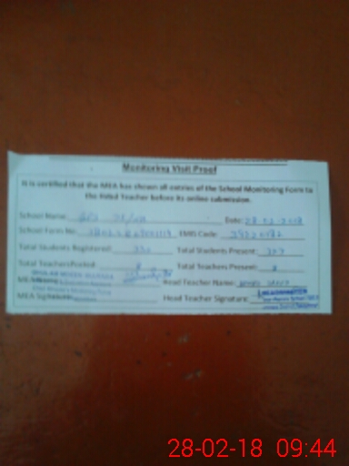 | Attendance Register | Head Teacher | MEA with School | Visit Proof |