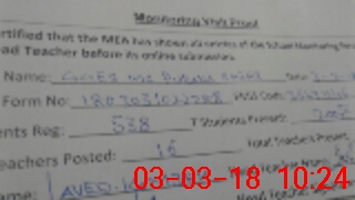| Attendance Register | Head Teacher | MEA with School | Visit Proof |