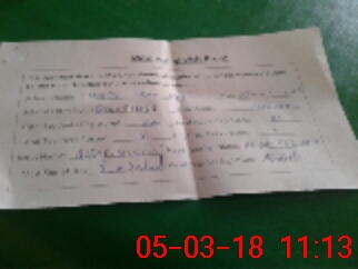 | Monitoring Date: 05-03-2018 | Start Time: 05-03-2018 10:22 AM | End Time: 05-03-2018 11:13 AM | Name of MEA: Al**** Hu**** BN**** | |
