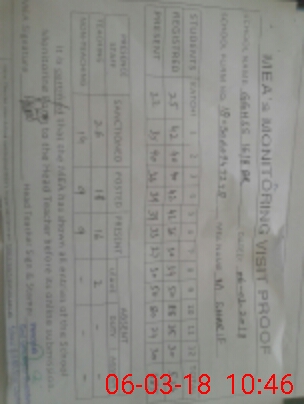 | Attendance Register | Head Teacher | MEA with School | Visit Proof |