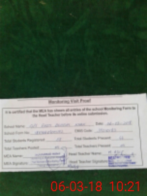 | Monitoring Date: 06-03-2018 | Start Time: 06-03-2018 09:00 AM | End Time: 06-03-2018 10:22 AM | Name of MEA: Mu**** Ha**** (R**** | |