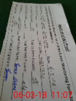 | Monitoring Date: 06-03-2018 | Start Time: 06-03-2018 10:26 AM | End Time: 06-03-2018 11:10 AM | Name of MEA: YO**** AL**** SH**** | |