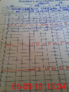 | No. of Students Present - Male | 0 | 3 | 6 | 5 | 7 | 2 | 7 | 30 | ||||||||