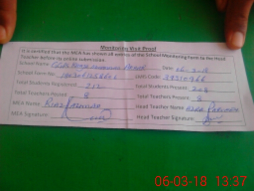 | Certified that this School was Inspected by the Undersigned MEA/DMO Today and the Information Stated Above is as Per Record. | |||||