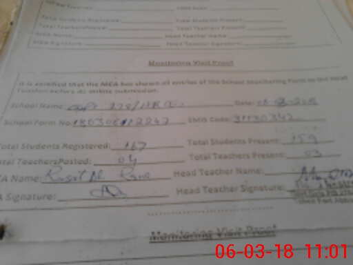 | Attendance Register | Head Teacher | MEA with School | Visit Proof |