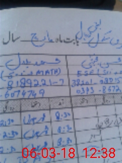 | Name: PE**** AK**** SH**** Designation: (School Headmaster's/Headmistress's) PST Phone/Cell Number: 03**** |