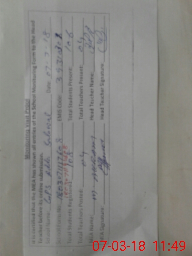 | Certified that this School was Inspected by the Undersigned MEA/DMO Today and the Information Stated Above is as Per Record. | |||||