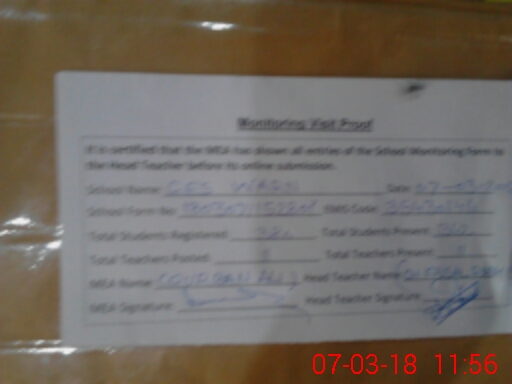 | Certified that this School was Inspected by the Undersigned MEA/DMO Today and the Information Stated Above is as Per Record. | |||||