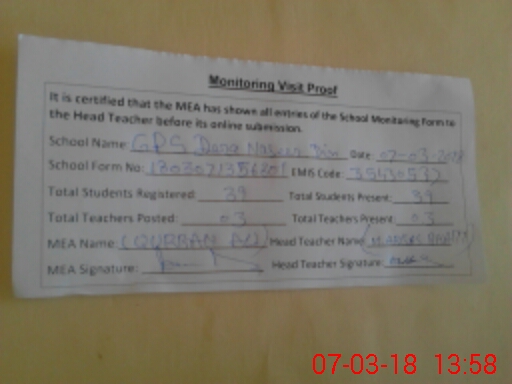 | EMIS Code: 35430537 | Name of School: GPS DERA NASEER DIN | |||