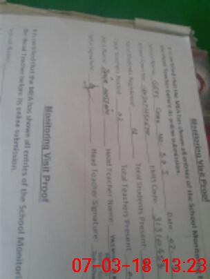 | Attendance Register | Head Teacher | MEA with School | Visit Proof |