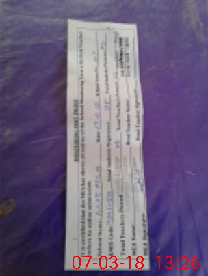 | School Visited by School Health & Nutrition Supervisor (No. of Visits) | 1 | Name1: | MUZAMMIL HUSSAIN | Name2: | |