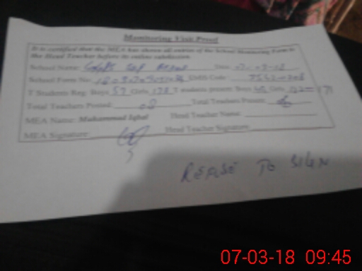 | Certified that this School was Inspected by the Undersigned MEA/DMO Today and the Information Stated Above is as Per Record. | |||||