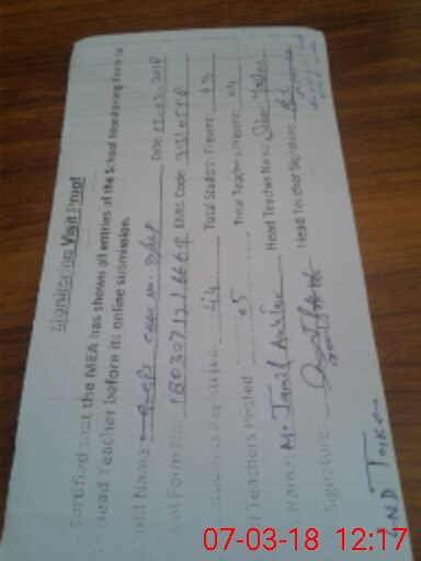 | Certified that this School was Inspected by the Undersigned MEA/DMO Today and the Information Stated Above is as Per Record. | |||||
