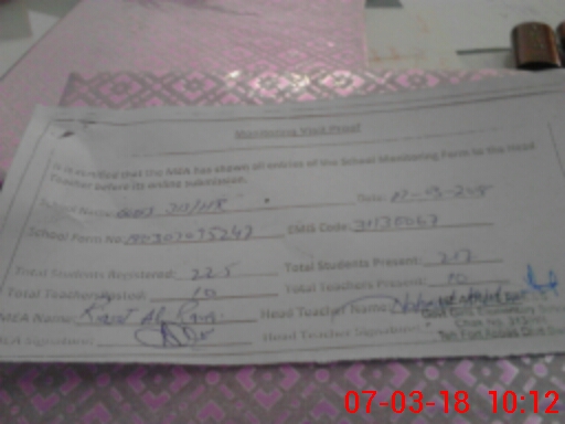 | Attendance Register | Head Teacher | MEA with School | Visit Proof |