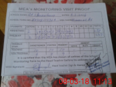 | Attendance Register | Head Teacher | MEA with School | Visit Proof |