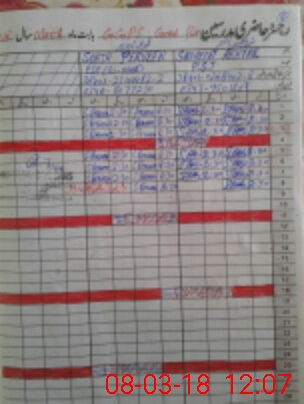 | CNIC | Full Name | Designation | R/C | Absence During Last Calender Month |