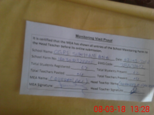 | EMIS Code: 35431012 | Name of School: GGPS SUKHAN WALA | |||
