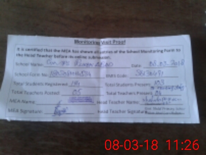 | Attendance Register | Head Teacher | MEA with School | Visit Proof |
