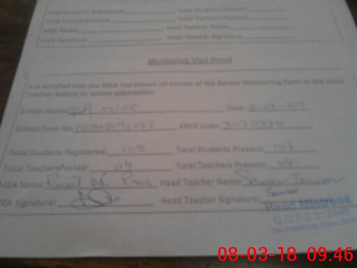 | Attendance Register | Head Teacher | MEA with School | Visit Proof |