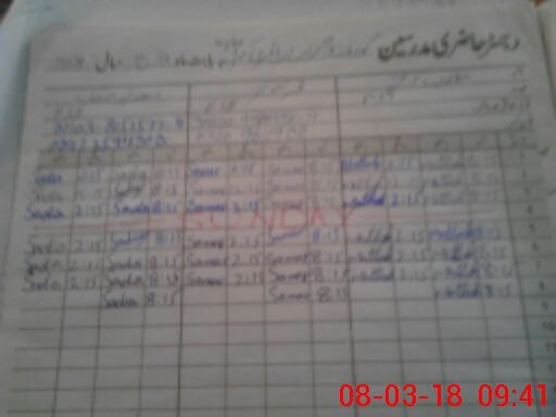 | CNIC | Full Name | Designation | R/C | Absence During Last Calender Month |