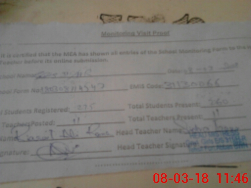 | Certified that this School was Inspected by the Undersigned MEA/DMO Today and the Information Stated Above is as Per Record. | |||||
