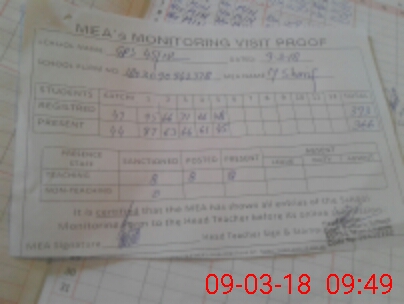 | Attendance Register | Head Teacher | MEA with School | Visit Proof |