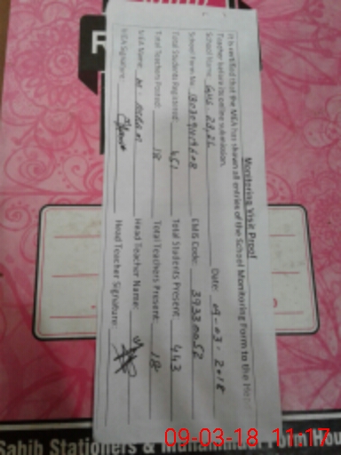 | Attendance Register | Head Teacher | MEA with School | Visit Proof |