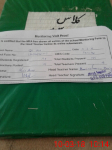 | Attendance Register | Head Teacher | MEA with School | Visit Proof |