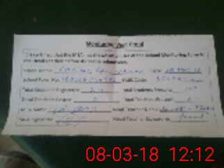 | Monitoring Date: 08-03-2018 | Start Time: 08-03-2018 11:38 AM | End Time: 08-03-2018 12:16 PM | Name of MEA: Eh**** Ba**** Bh**** | |