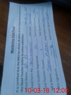 | Attendance Register | Head Teacher | MEA with School | Visit Proof |