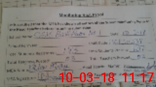 | Monitoring Date: 10-03-2018 | Start Time: 10-03-2018 10:55 AM | End Time: 10-03-2018 11:18 AM | Name of MEA: GH**** MU**** | |
