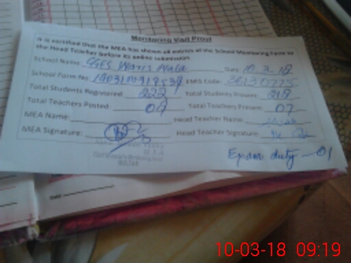 | Attendance Register | Head Teacher | MEA with School | Visit Proof |